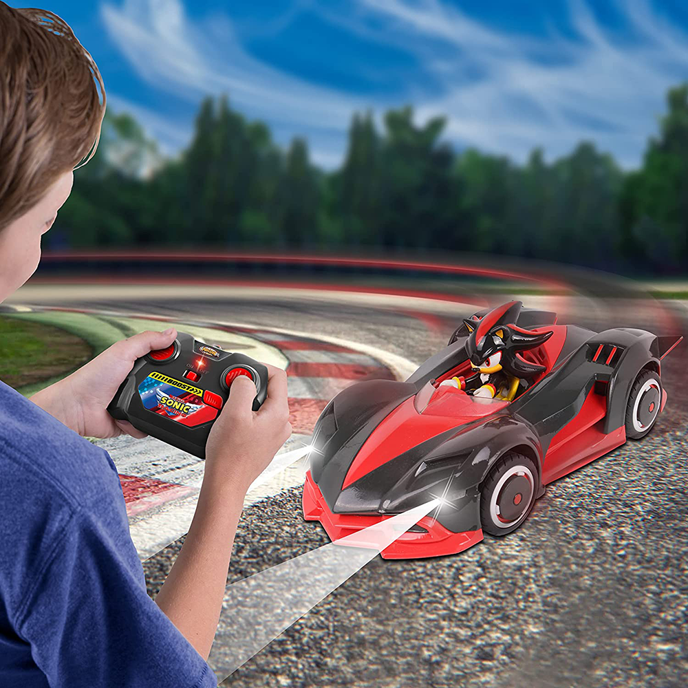 For the perfect gift for any Sonic fan, look no further than the Shadow the Hedgehog Remote Control Car! This officially licensed product is incredibly detailed with a vivid portrayal of Shadow and working lights. Additionally, it boasts rubber tires and adjustable front wheel alignment to ensure that your recipient has complete control over their toy car. The Parents' Choice Foundation bestowed this item with its esteemed Fun Stuff Award as well, so you can rest assured knowing that you're buying a quality present when selecting this remote-control vehicle. Get your Shadow the Hedgehog Remote Control Car today and start racing!
