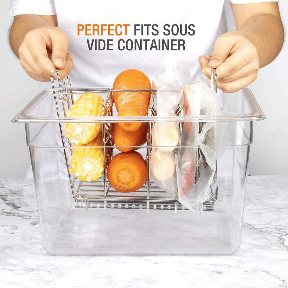 The best part? It's easy to use! Just fill the container with water, connect the immersion circulators to it, place your bag of ingredients under the wire rack, and you're good to go. Plus add on accessories like a vacuum sealer or reusable bags to ensure perfectly cooked meals every time!