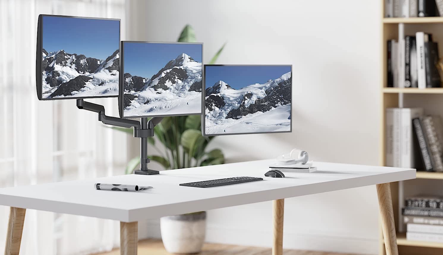 Our team of monitor mounting experts has personally read thousands of reviews on Amazon to find the best triple monitor mount for your needs.