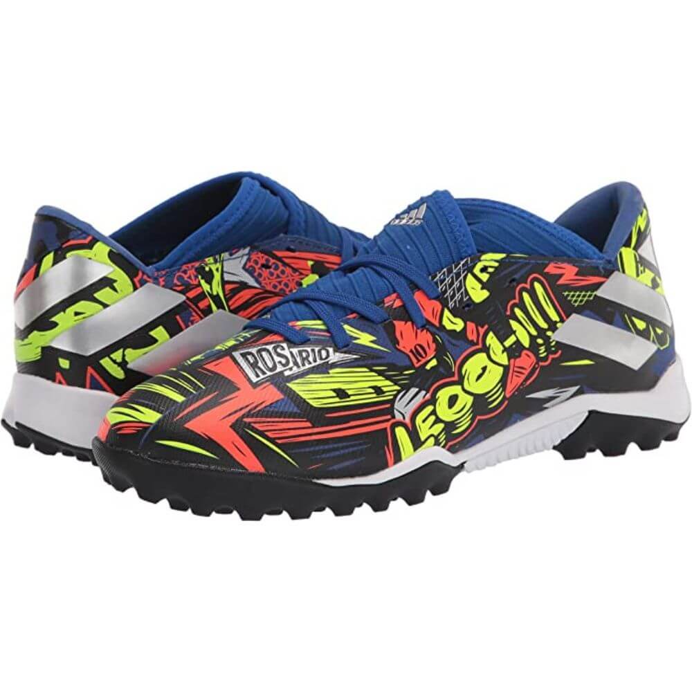 Show your admiration for Lionel Messi and get ready to make some moves with the adidas Nemeziz Messi Turf Soccer Shoe. This vibrant soccer shoe is designed with a striking all-over print on its coated textile upper, alongside a stretchy tension-tape collar that securely fits around your ankle for maximum comfort. With lightweight cushioning from the full-length EVA midsole and specially crafted lugged rubber outsole built specifically for shallow turf surfaces, you'll be able to play confidently – so go ahead and show off your love of the game!