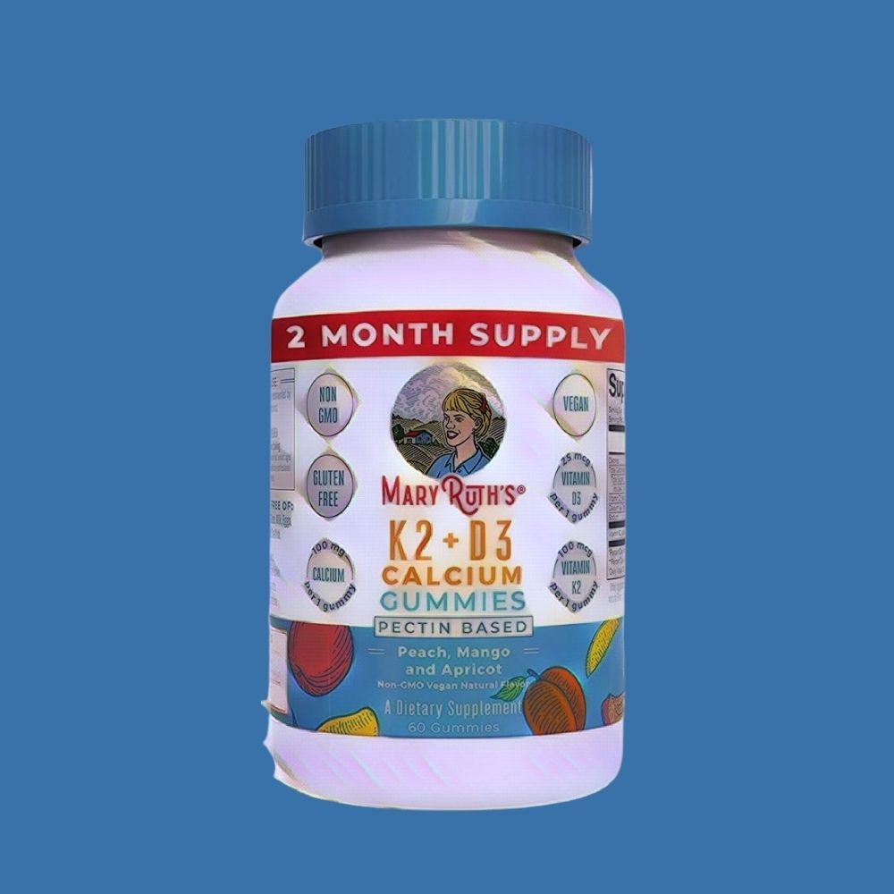 Each serving of MaryRuth Organics Calcium with Vitamin D3 gummies provides 25mcg (1000IU) of vitamin D3 and 100mcg of vitamin K2, as well as 100mg of calcium.