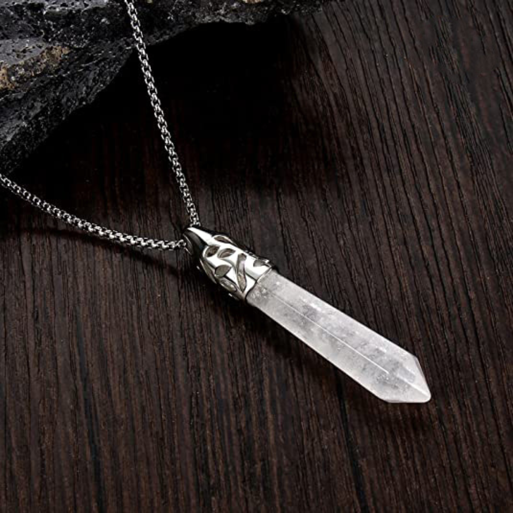 Add a glimmer of sparkle and energy to your look with the White Quartz Crystal Pendant! This gemstone is handcrafted in 6 facets, strongly connected to an essential Chakra that helps elevate your vibration while emitting positive energy. The necklace chain measures 18 inches in length, making it ideal as a pendulum pendant for both everyone, regardless of gender. Additionally, this gorgeous jewelry is crafted from surgical stainless steel that will not cause allergic reactions due to its lead-free and nickel-free properties, ensuring comfort for those with sensitive skin. If you're looking for an eye-catching jewelry set that can enhance your well-being and vibrational levels, this pendant is perfect! So, get your White Quartz Crystal Pendant today and start radiating positive energy!