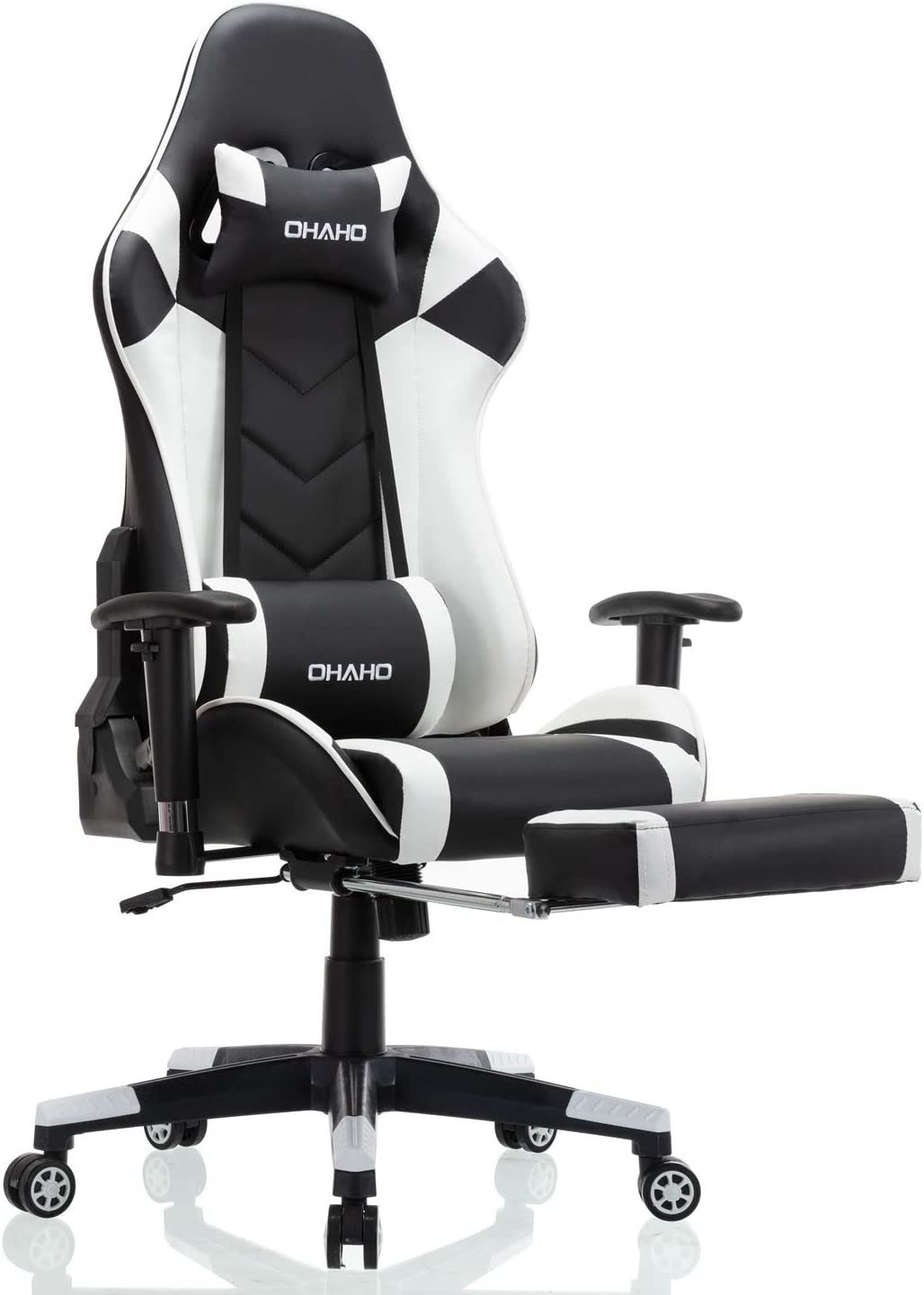 The Ohaho Gaming Chair also features a multi-function 90-180 degree adjustable backrest, vertically adjustable armrests, a 360° swivel round base, a retractable footrest, a removable headrest pillow, and a lumbar cushion. Plus, it comes with excellent after-sales service, with free replacement or money back for any reason within 30 days, and free replacement for damaged or defective parts within 12 months. So if you're looking for a gaming chair that looks great, is comfortable, and is built to last, then the Ohaho Gaming Chair is a perfect choice.