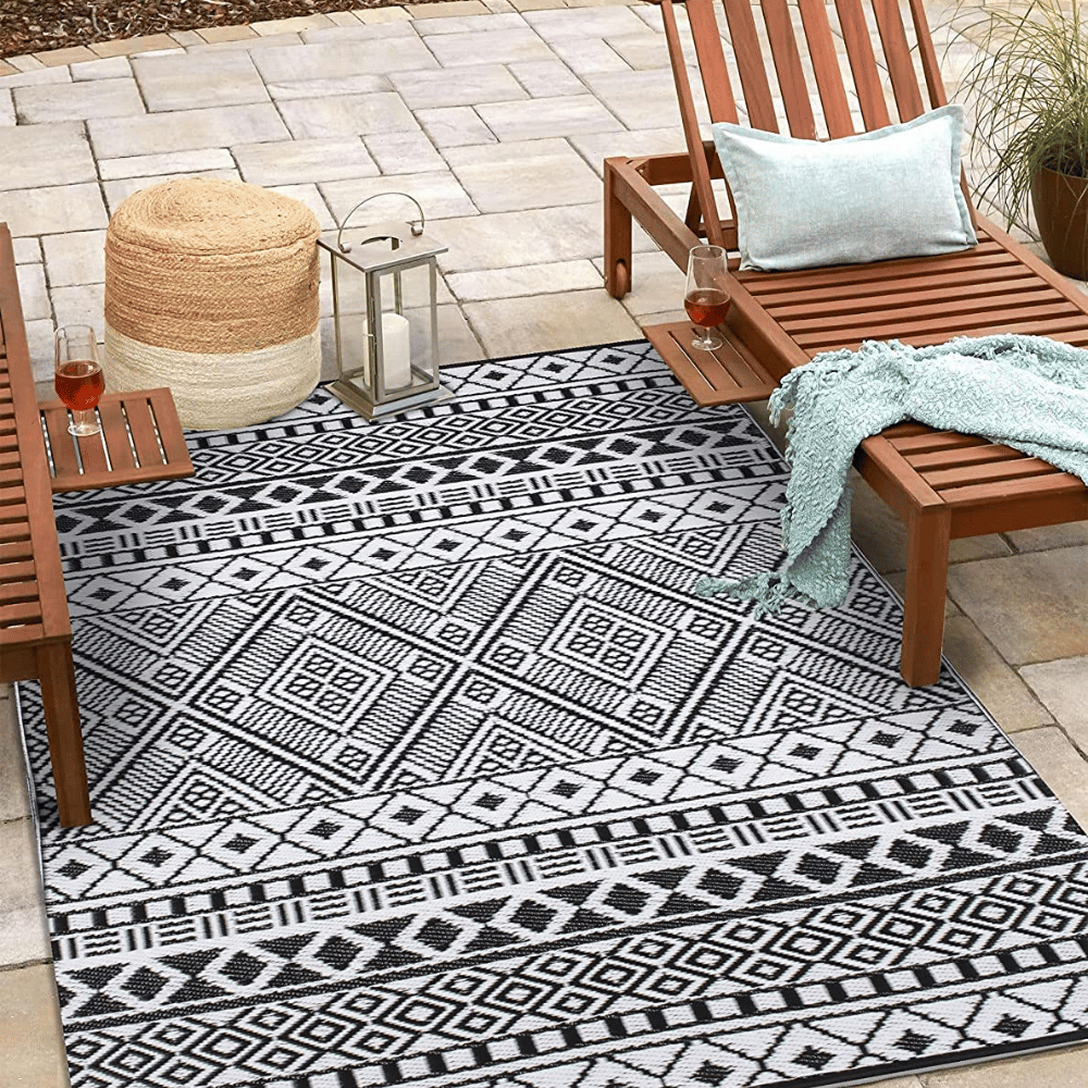 No need to strain your eyes or waste time reading Amazon reviews in search for the ideal black and white outdoor rug. Our team of experts have already done all the hard work so you can effortlessly locate and purchase what fits best with your patio or deck.