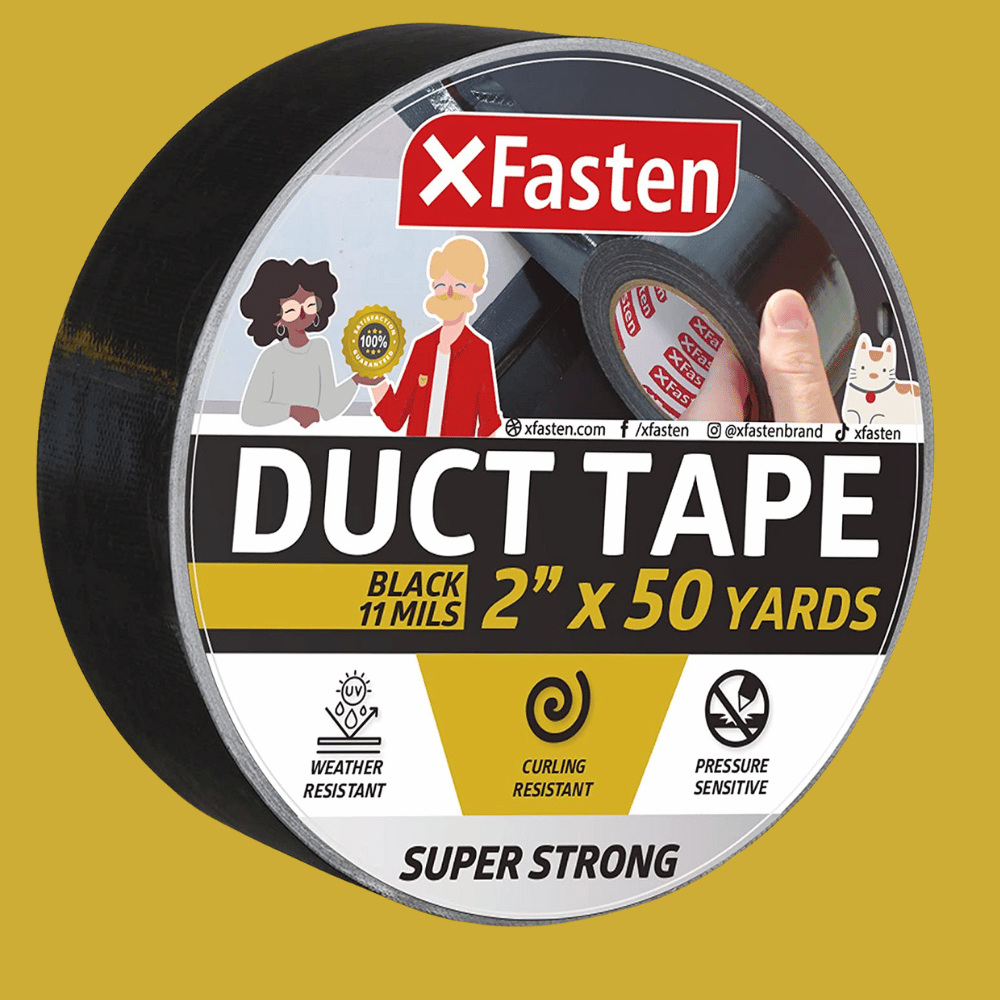 XFasten Super Strength Black Duct Tape is an industrial grade tape that can withstand big temperature changes and is highly curling and water-resistant. It bonds great to all surfaces and is easy to tear and use.