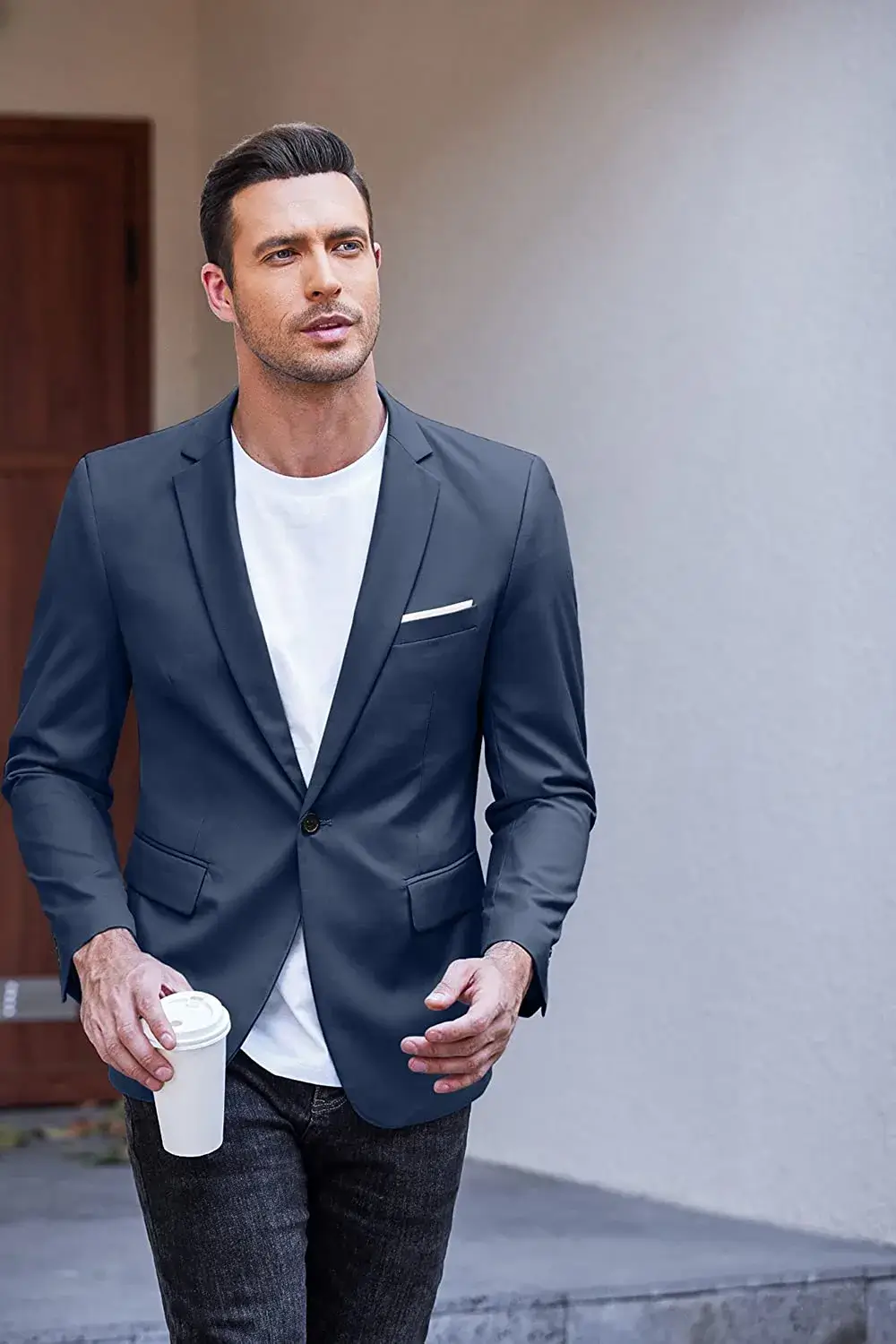 COOFANDY Men's Casual Blazer is the perfect choice for a stylish and sophisticated look. This blue sports coat is made from high-quality professional suit fabric, ensuring it looks sharp all the time.