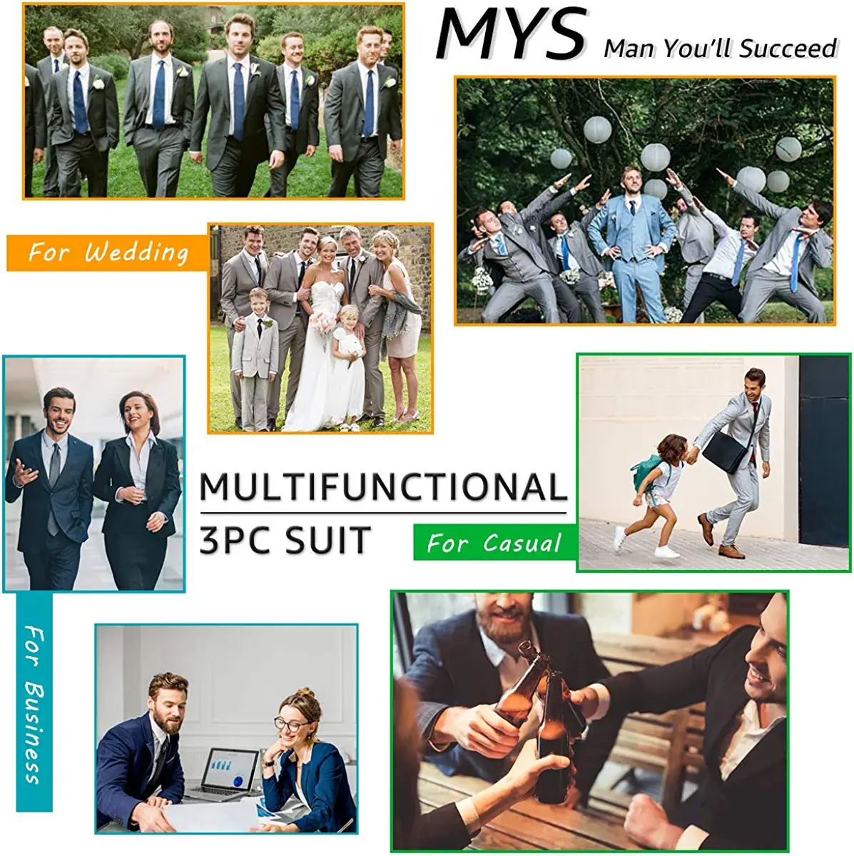 My's Men's 3 Piece Slim Fit Suit is the perfect choice for the modern man who wants to look sharp and stylish.