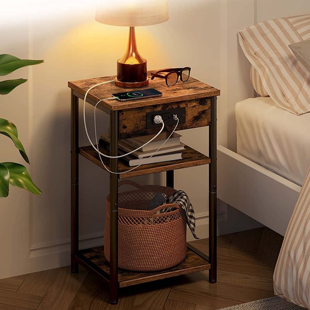 The Rolanstar Nightstand is designed with a 3 tier structure that saves space and provides ample storage for books and other bedside items. In addition, this open shelf nightstand comes with a charging station that has 2 AC outlets, 2 USB ports, and a 6.5ft power cord, so you can easily charge all your devices.