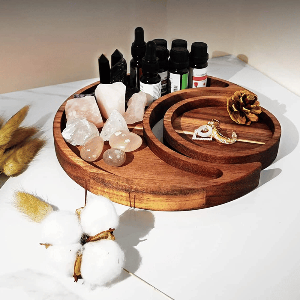 Plus, the energies of the moon are purifying and can be used to clear and program any crystal. You can also use it to keep your favorite essential oils at your fingertips, or to display your crystal collection in style!