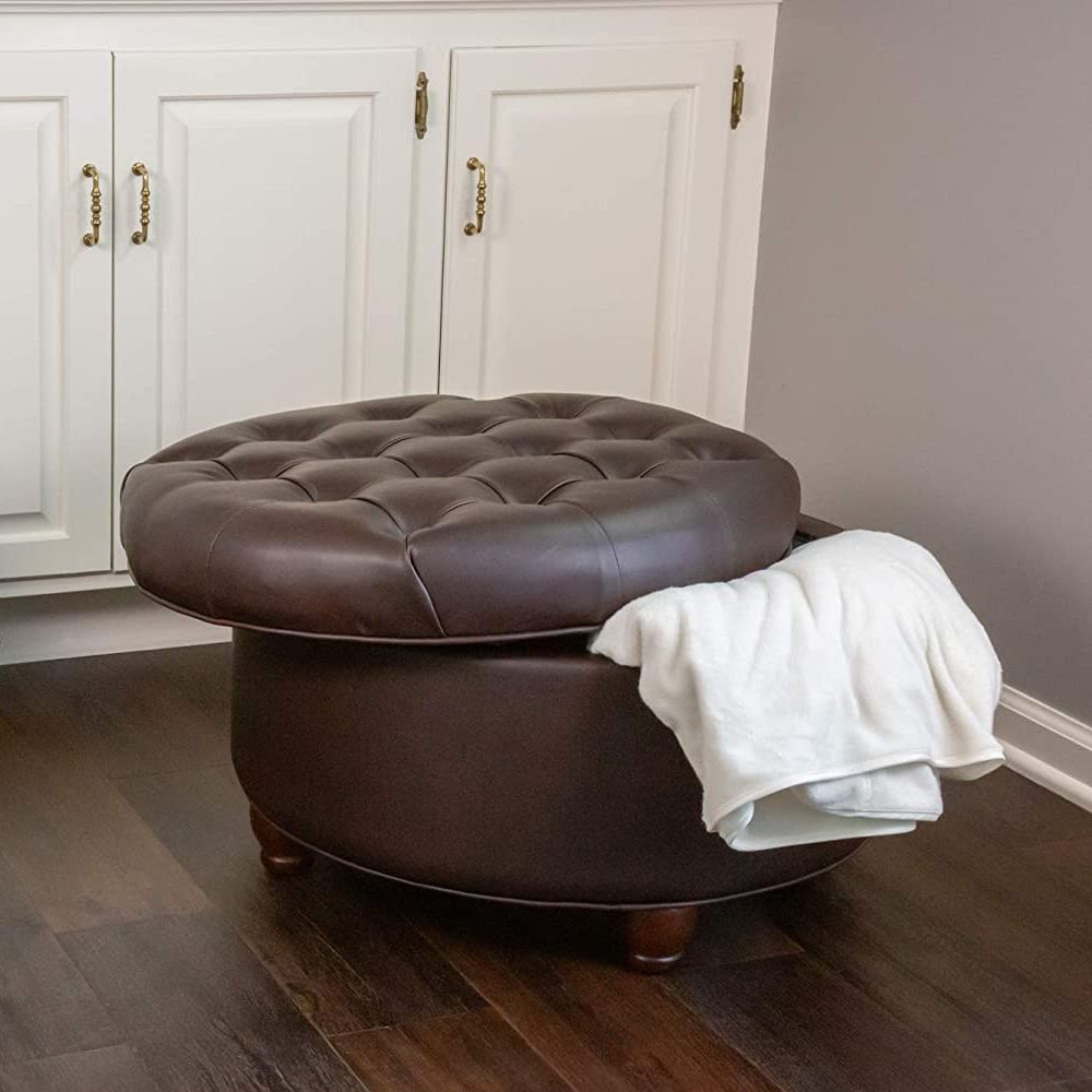 Our team of interior design experts has read thousands of reviews on Amazon's site to sort, filter through, and find the best brown leather ottomans. We've done all the hard work so that you can easily find and purchase the perfect ottoman for your home.