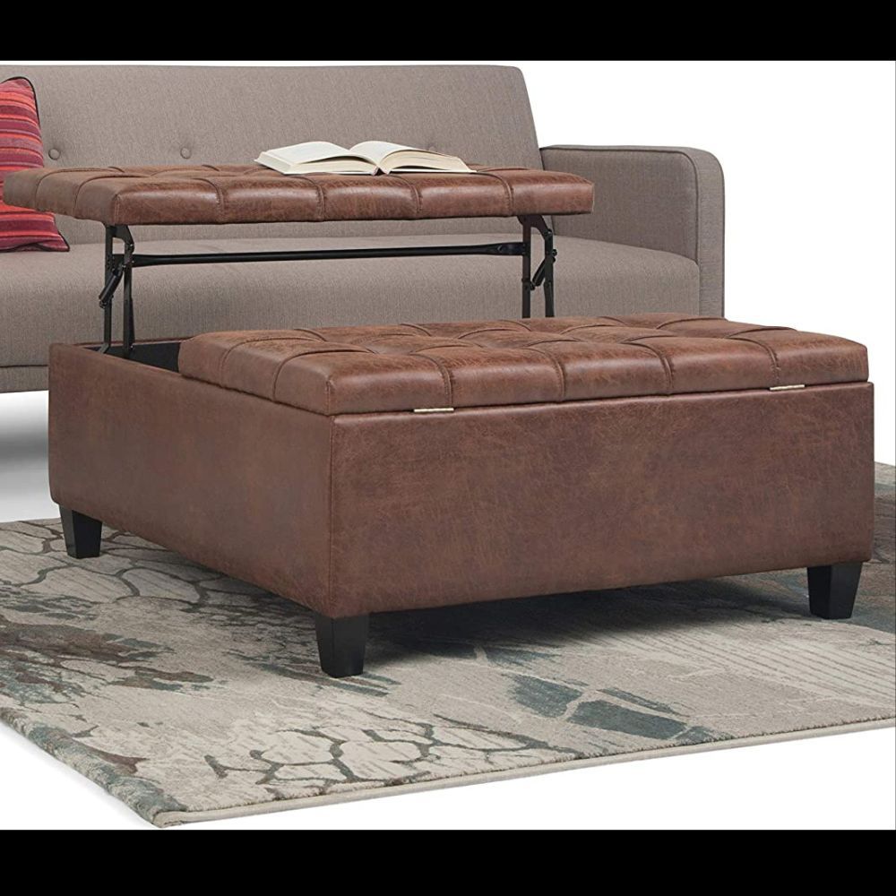 The Simplihome Harrison Square Storage Ottoman is more than just a place to store items. It can also be used as a coffee table, foot stool, accent piece, or for extra seating. Its multiple uses make it a valuable addition to any space.