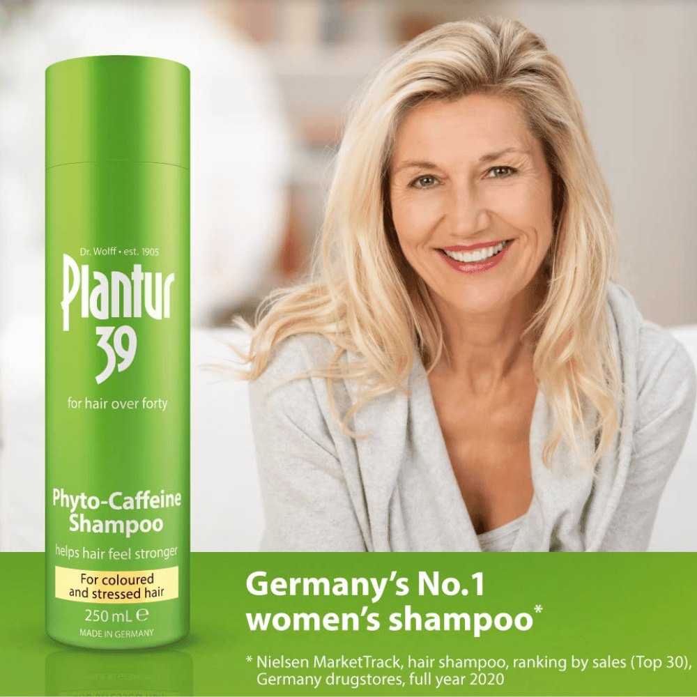 The Phyto-Caffeine Complex containing caffeine, zinc, and niacin travels through strands and strengthens hair that may have become weakened due to conditions related to aging. Get the healthiest hair possible with Plantur 39 Phyto-Caffeine Shampoo!
