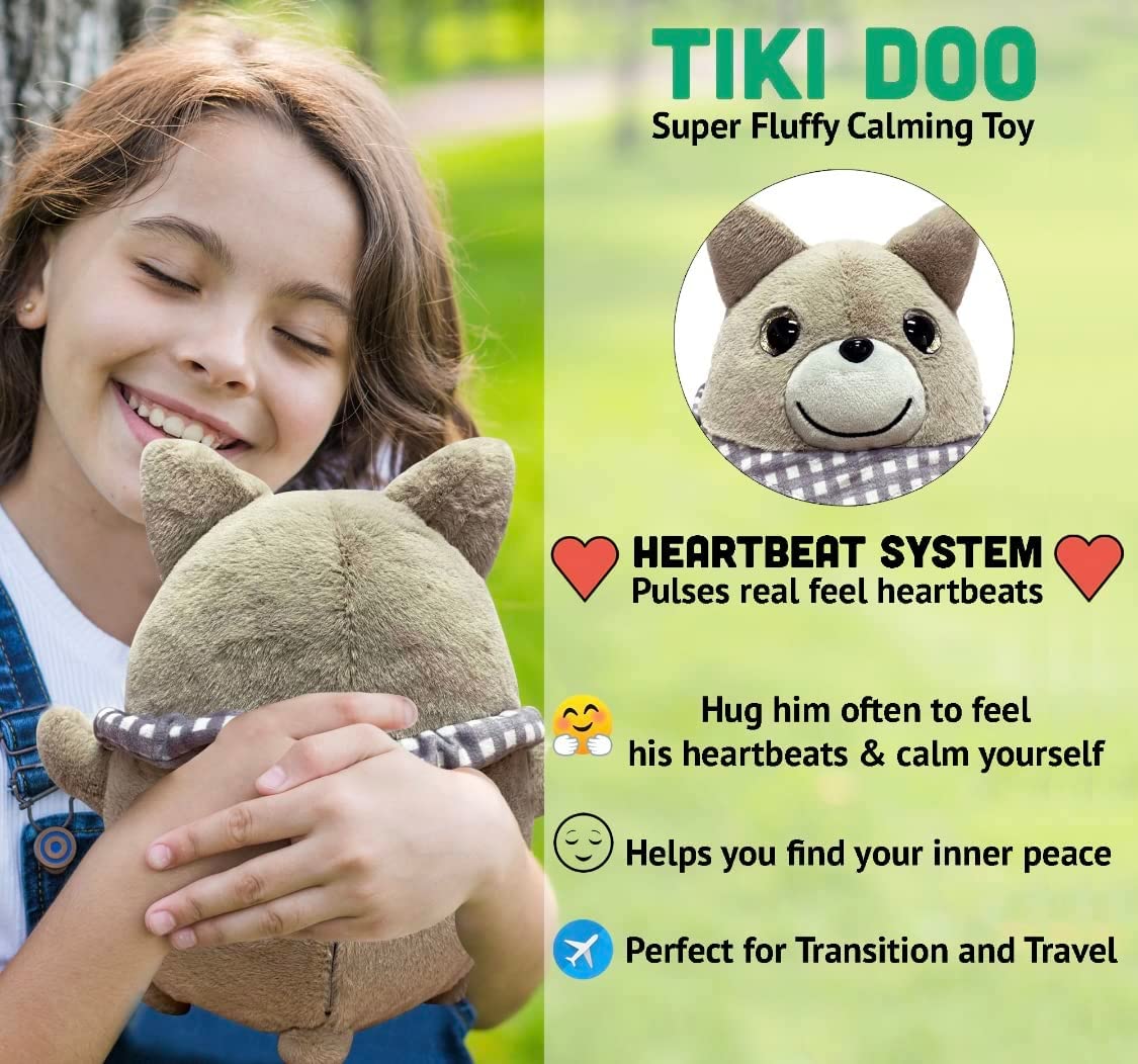 CBtek - TikiDoo Calming Plush Toys Anxiety Stuffed Animals with Heartbeat for Emotional Balance