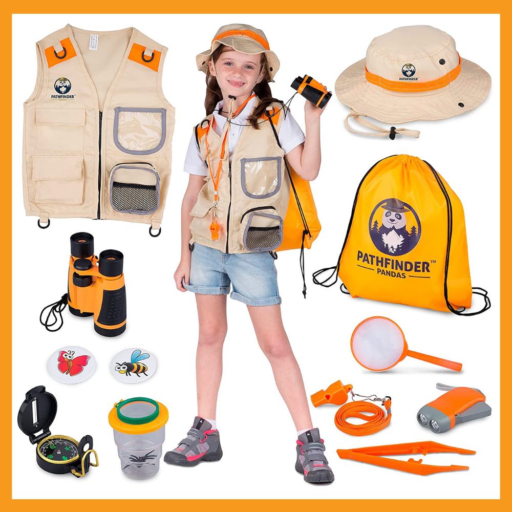 The Pathfinder Pandas Kids Explorer Kit is the ultimate adventure package for kids! With this kit, kids can dress up as genuine adventurers with the included breathable explorer hat and vest. Not only is it a great safari costume or paleontologist kit, but it comes with some great tools for learning and education. Kids can learn about navigating with the compass, catching colorful bugs, and use the binoculars to spy on wild animals!