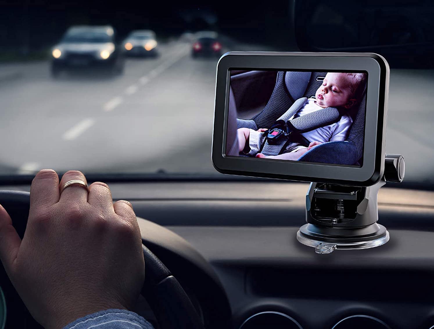 The camera facing the baby has night vision, so you can see your baby anytime, even when driving at night.