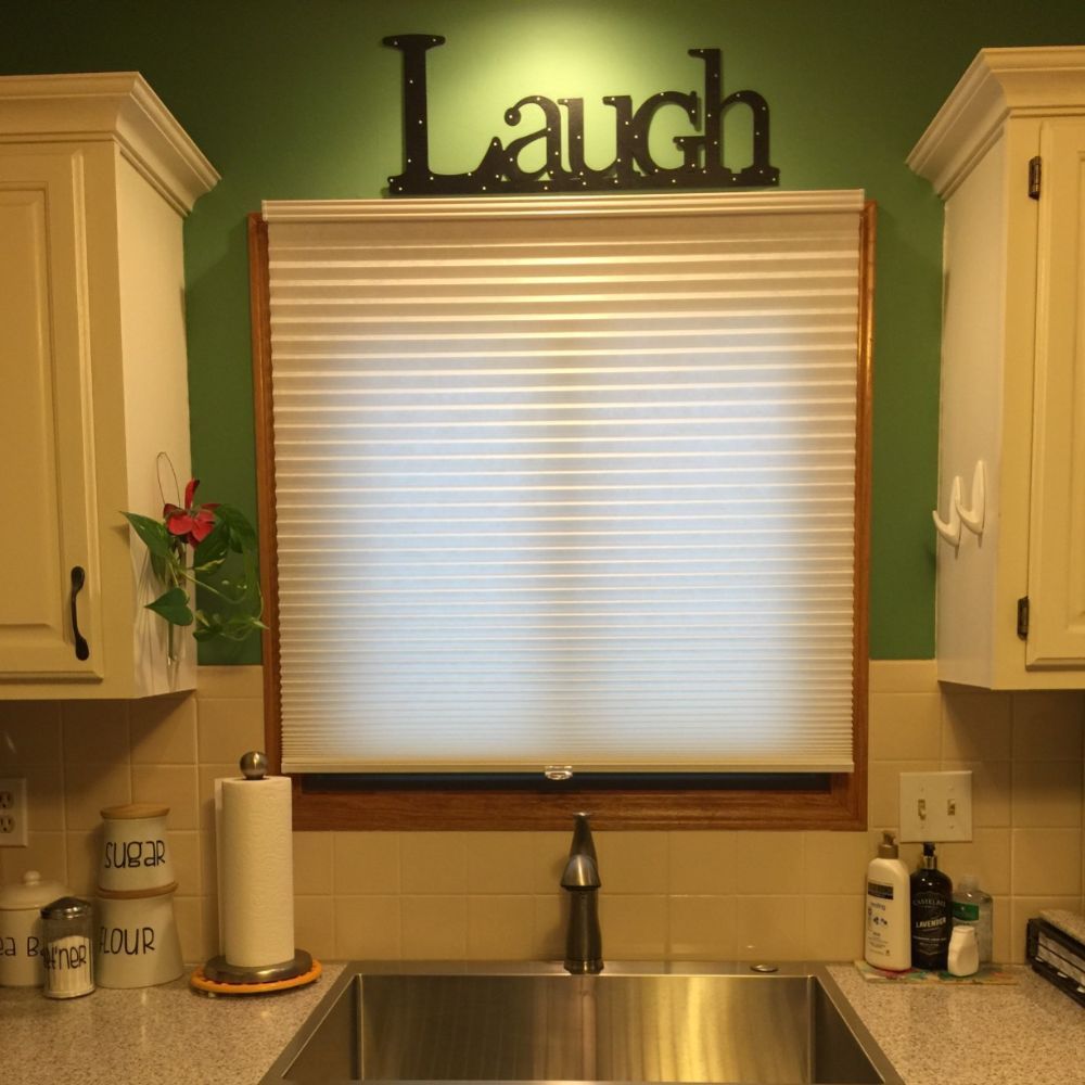 The honeycomb design of the fabric traps air between the cells, creating an insulating barrier that helps keep a room cool in the summer and warm in the winter.