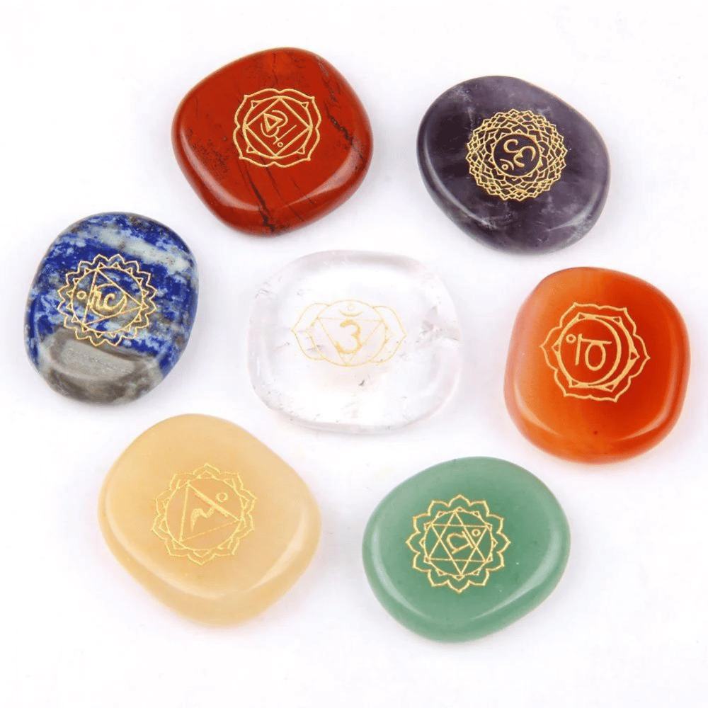 JD.Gems Engraved Chakra Symbols Stones-Reiki Healing Crystal