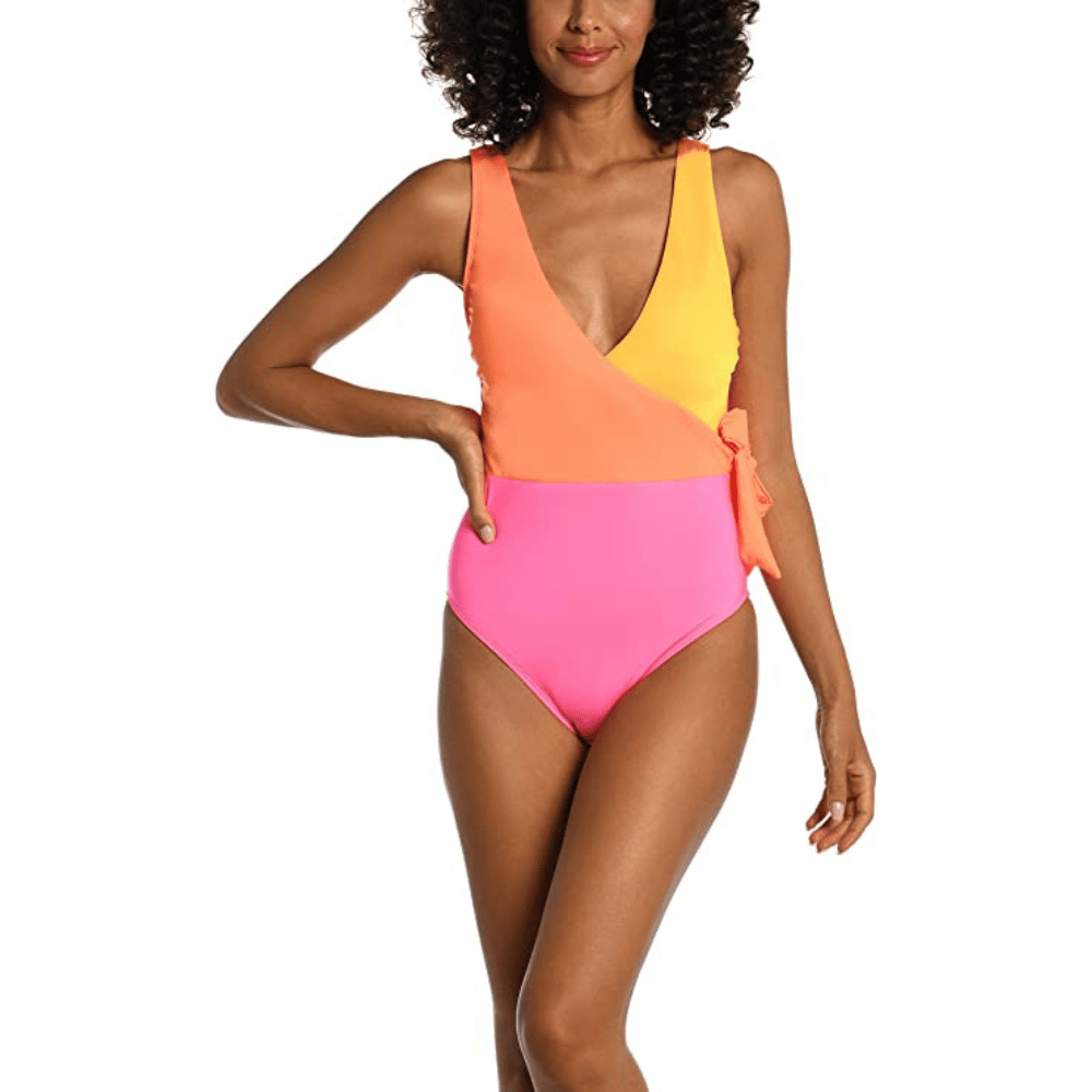 The Amavi One-Piece Swimsuit is the perfect choice for anyone looking for a stylish and confident look at the beach. The bold and daring color block design is sure to turn heads and make an impact with its vibrant colors popping against the solid bottom.