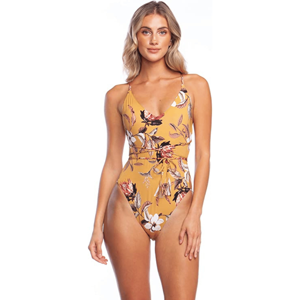 Upgrade your summer style with the BCBG desert flower X-back one-piece tan line bathing suit or swimsuit. Crafted from a high-quality blend of 64% Nylon and 36% Elastane for added stretch, this elegant suit shows off your curves in all the right places.