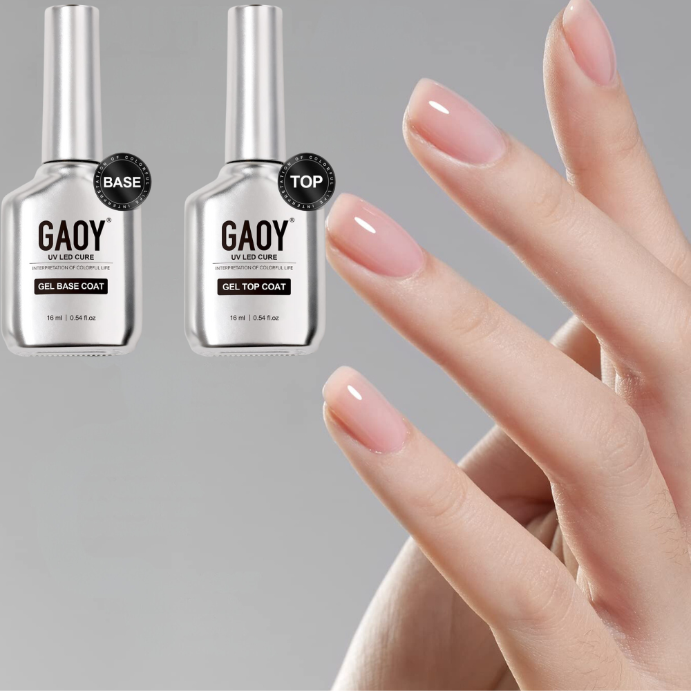 The GAOY 16ml 2 Pcs Clear Gel Nail Polish is a premium choice for those who desire a glass-like finish that's both clear and shiny. This set includes two large 16ml bottles, offering more products for extended use. The top coat cures to a rock-hard consistency, providing a clear and shiny layer that enhances the color underneath without dulling it.
