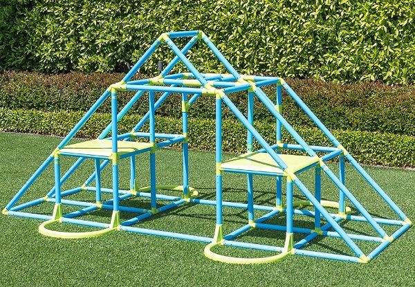 Eezy Peezy MEGA Pyramid Monkey Bar Climber is the perfect way to keep your kids active and engaged! This colorful pyramid climbing tower will quickly become their favorite backyard activity, as they can enjoy endless fun while building their physical strength, coordination, and confidence. It's lightweight and easy to assemble and move, so you can bring it indoors or outdoors, rain or shine. Plus, it's made with durable high-quality plastic and enhanced with UV protection for extra durability.