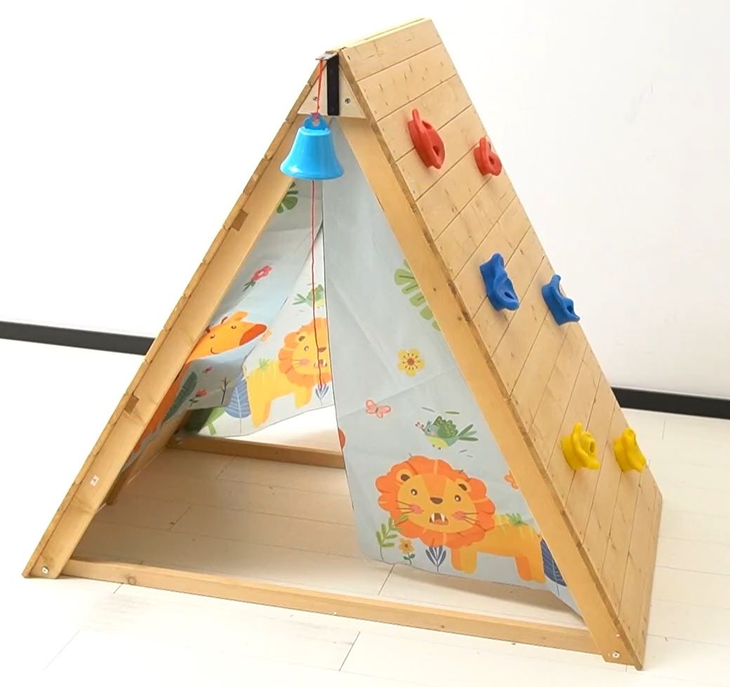 Costzon kids' triangle climbing play tent is the perfect toy for children 3-8 years old! It's specially designed with a colorful climbing wall and bell, making it the ideal montessori climbing toy for cultivating children's independence and autonomous exploration ability. Plus, it's made with high quality natural fir wood materials and coated with outdoor waterproof paint, making it more environmentally friendly and safe than plastic. It's also spacious enough for 2-3 kids, meaning more time for your little ones to act out their stories and have fun!