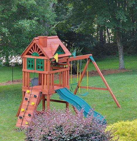 The Gorilla Playset Nantucket II Wood Swing Set also features soft rubber grippy plastic coating on swing chains to help prevent pinches, and recessed bolts to prevent snagging. Plus, it can easily be configured with any standard size swing component, allowing you to customize your swing set to your child's needs. So why wait? Get your own Gorilla Playset Nantucket II Wood Swing Set today!