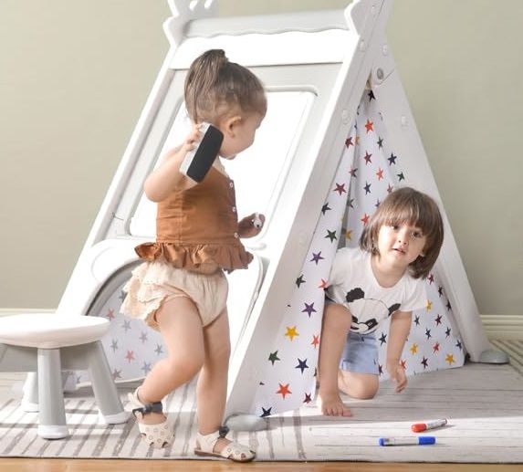 Merax 4-in-1 Foldable Triangle Climber is easy to assemble and folds away easily when not in use. The inviting canvas front & back door reveals a secret hideout to plan exciting adventure and all plastic pieces are colorful and fade-resistant. Great for both indoors and outdoors, this 4-in-1 activity house is great fun for toddlers and preschool age children. Plus, it's made with durable fabric that can be cleaned as needed. Get your own Merax 4-in-1 Foldable Triangle Climber today and let the fun begin!
