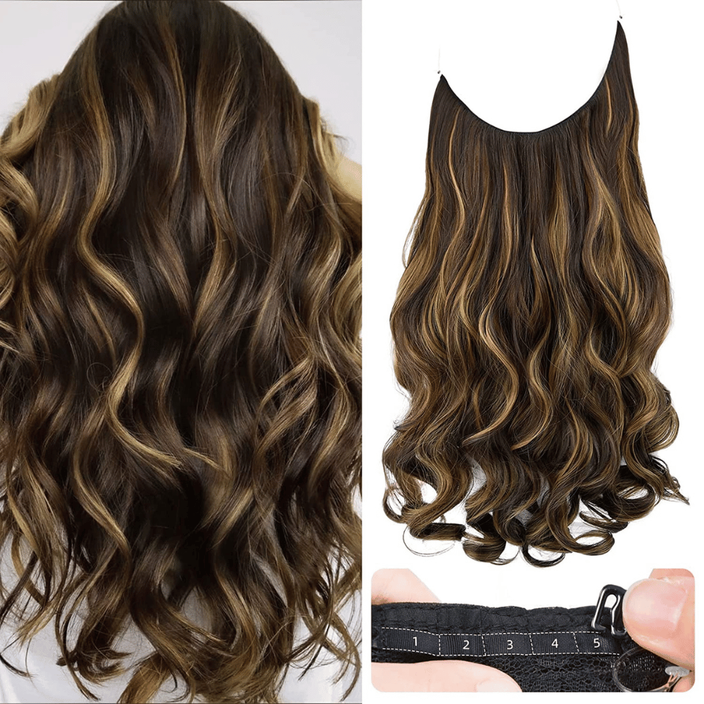 Adjustable Size Removable Secure Clips in Curly Wavy Secret Hairpiece for Women 20 Inch - Dark Chocolate Brown with Golden blonde mixed.
