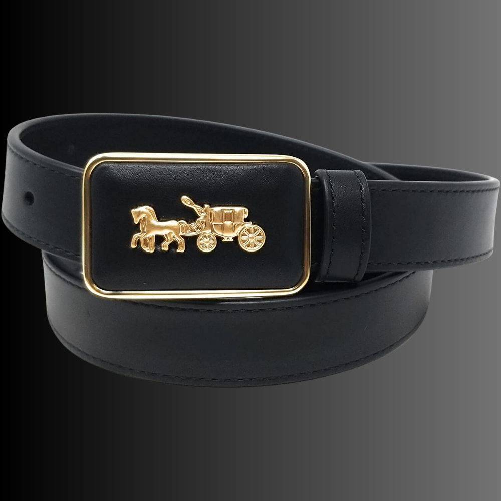 Coach Women's Signature Buckle Belt is a timeless accessory that adds a touch of sophistication to any outfit. It's made of 100% leather and is black in color for a classic look. It also features the signature Coach logo buckle in gold for a chic and stylish touch.