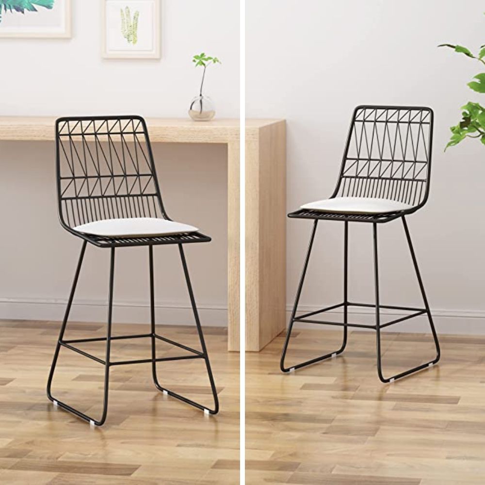 These bar stools are designed with a mid-century modern look that includes stretched-out legs and tufted backrests. They are 29.5" bar height chairs which are perfect for high kitchen counters and home bars. Plus, the powder-coated steel legs of the kitchen stools ensure stability with an attached adjustable feet to keep them standing upright without wobbling.