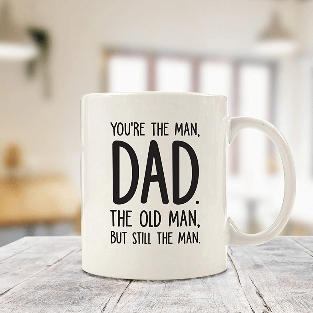 With its clever design and 11 oz capacity, this mug is sure to become your dad's go-to for his morning cup of coffee or tea. So why wait? Treat your dad to a gift he'll love with this "You're The Man, Dad" mug.