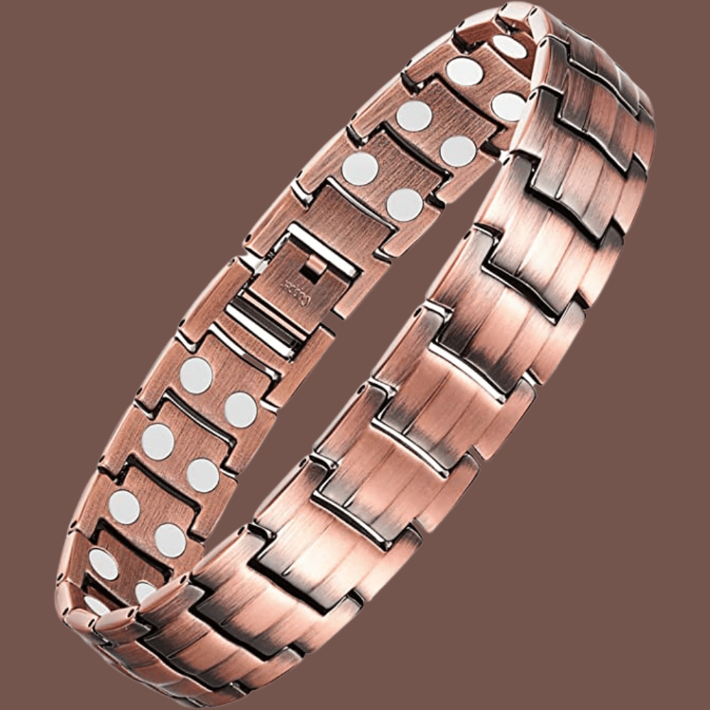 Wearing a copper and magnetic bracelet is believed to have healing properties, such as reducing inflammation, providing pain relief, improving circulation, and promoting overall health.