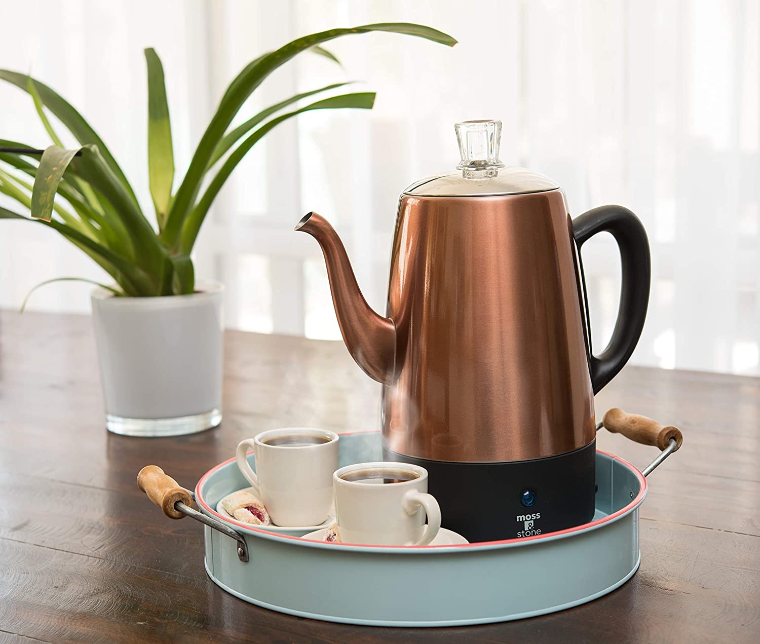 The Moss & Stone Copper Coffee Percolator is the perfect choice for coffee lovers everywhere. Not only does it make the perfect cup of coffee, but it also looks beautiful and is sure to last for years to come.