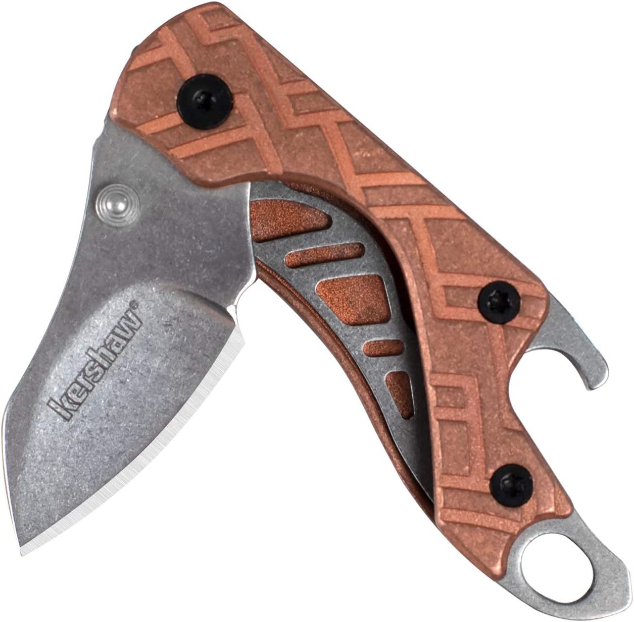 Kershaw Cinder-Copper Pocket Knife is perfect for anyone looking for a reliable and stylish small keychain knife. Its copper handles provide a unique look that will develop a beautiful patina over time.