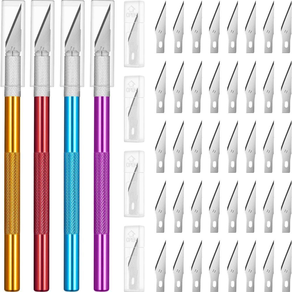 4 Pieces Craft Knife Hobby Knife with 40 Pieces Stainless Steel Blades Kit for Cutting Carving Scrapbooking Art Creation