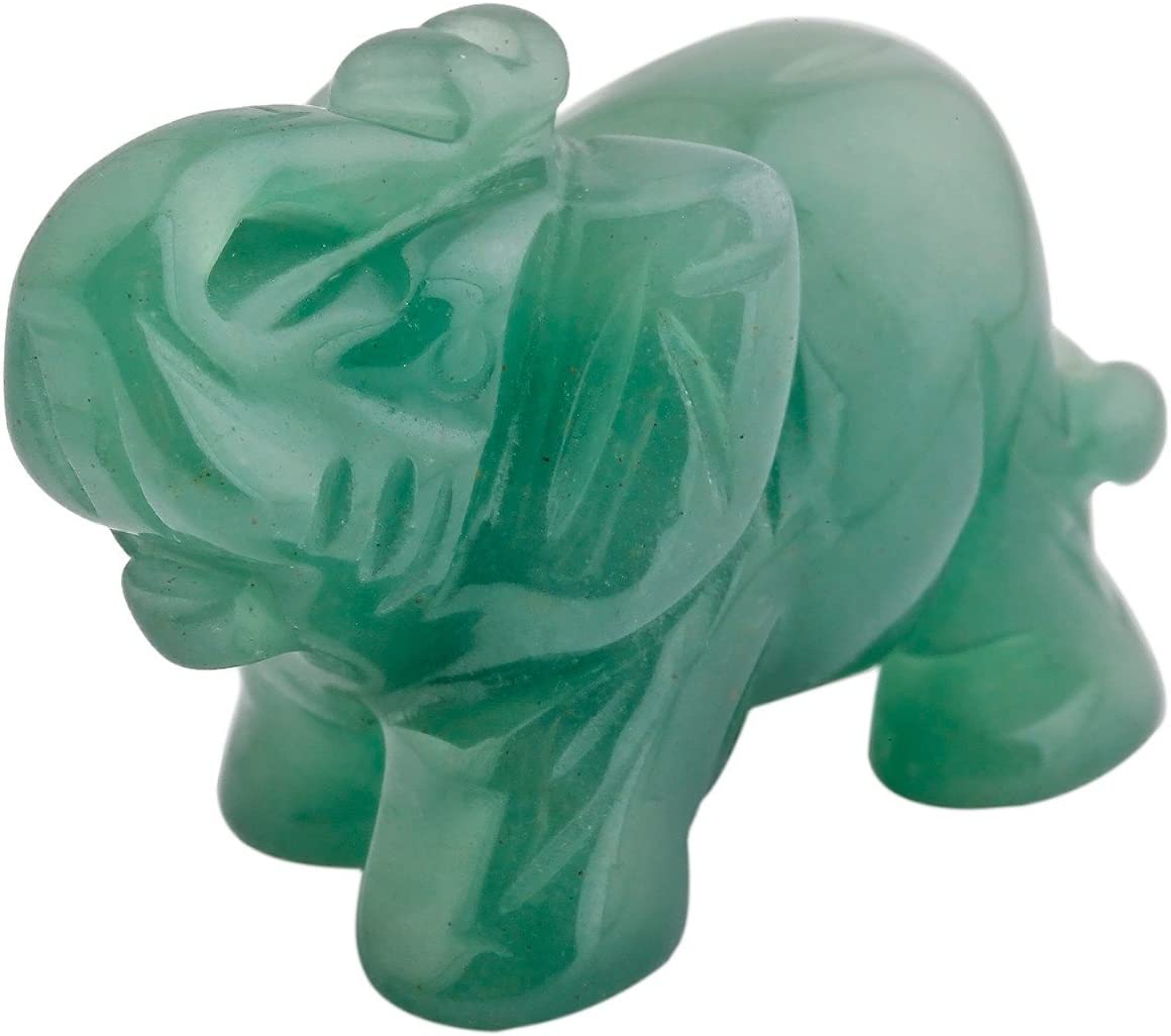 mookaitedecor Green Aventurine Crystal Elephant is the perfect addition to any home decor. Every hand crafted elephant statue gemstone specimen is unique and carvings may slightly vary in size, color, and shape, so you can be sure to receive a one-of-a-kind piece. You can place it in your living room, children's room, office, car, handbag, pocket, and it will bring you peace, fortune and endless positive energy. Plus, it's an ideal gift for friends and family.