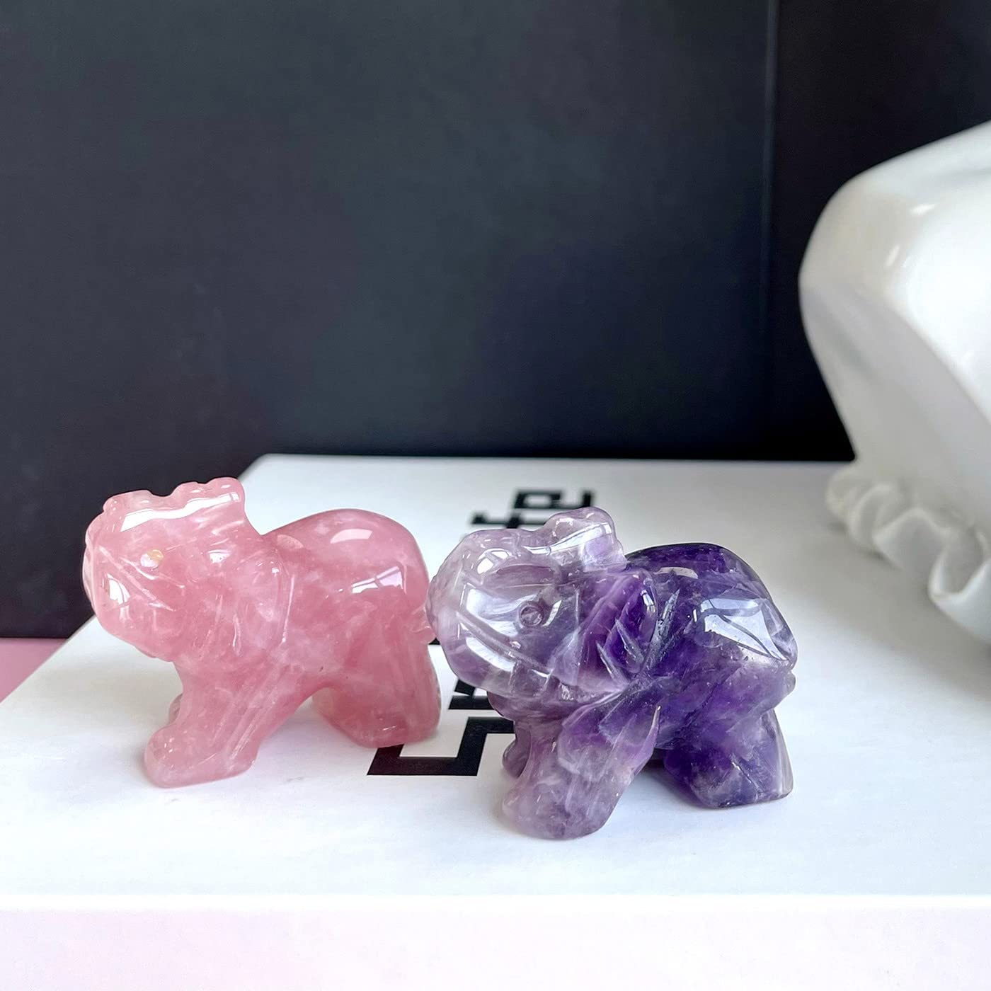 DUQGUHO Crystal Elephants are the perfect gift to express your love and wishes to someone special. These crystal elephant figurines are made of natural crystal stones and are sure to bring luck and happiness to crystal beginners, collectors, and lovers. Rose quartz is a famous love gem and is full of honesty and courage. Amethyst represents spirituality, spirit, and sublime love and can be beneficial for improving intuition and subconsciousness. Together, these two crystals are especially suited for love, family and friendship themes.