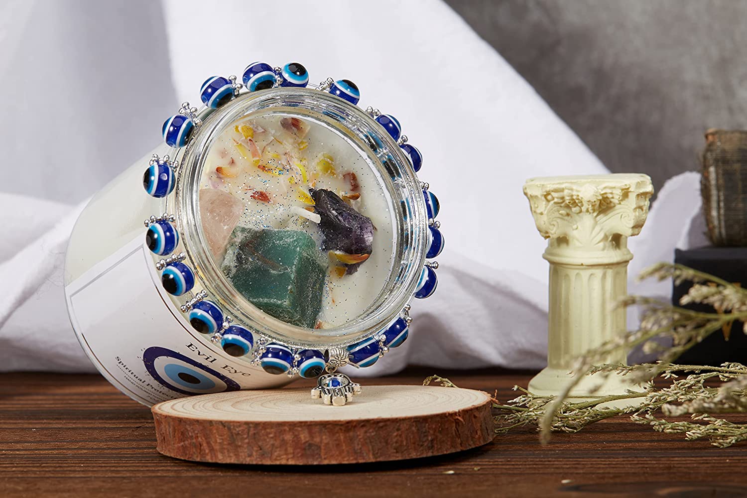 Likeyo - Evil Eye Candle Spiritual Protection with Healing Crystals is the perfect way to ward off negative energy and bring in good vibes. This spiritual protection candle is made with natural crystal stones and is scented with lavender essential oil for a relaxing and calming effect. Plus, it includes a special evil eye bracelet and comes in a beautiful gift box, making it a perfect birthday or holiday gift.