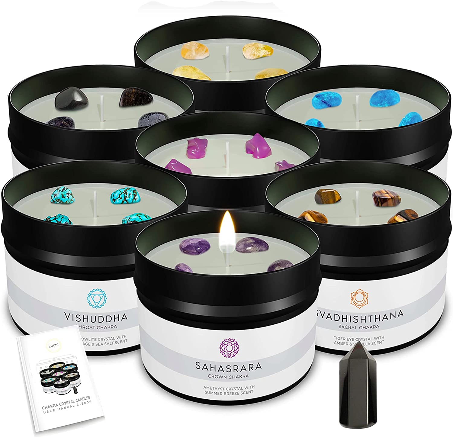 Lucir Store - Healing Chakra Candles With Crystals With A Surprise Chakra Crystal Wand
