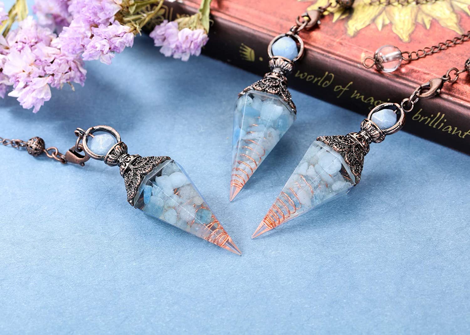 Jovivi Natural Aquamarine Healing Crystal Pendulums