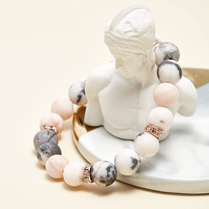 A Rose Quartz Bead Healing Crystal Bracelet is the perfect accessory for your meditation and yoga practice. The natural stone beads are made of zebra stone, a powerful crystal that helps bring balance and grounding into our lives. It connects us to the energy of Mother Earth and the Universe, allowing us to see both sides of a situation and giving us the courage and stamina to be our true selves.