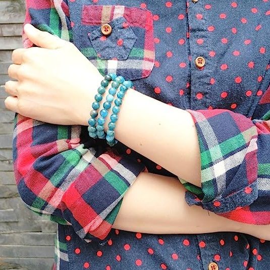 Adabele's Blue Apatite Gemstone Bracelet is a special piece of jewelry with a 7-inch outer circumference, making it ideal for 6.4 to 7-inch wrists. It is an unisex stretchy bracelet with 8mm or 0.31-inch beads, made of natural stone and not dyed or color enhanced. As it is made of natural stone, it is suitable for any type of skin and makes a great gift for men and women alike. Make sure this size fits your need and you are ok with the unique characteristics of natural stone before ordering.