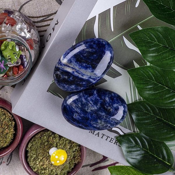 UFEEL Blue Sodalite Palm Stone Crystal is the harmonizer stone and stone of intuition and logic. It helps keep our thoughts rational and focused, washing away distractions and giving us inspiration and creativity while improving our memory. It's the perfect pocket stone that fits perfectly into the palm of your hand, great for crystal healing, meditation and other esoteric healing practices.