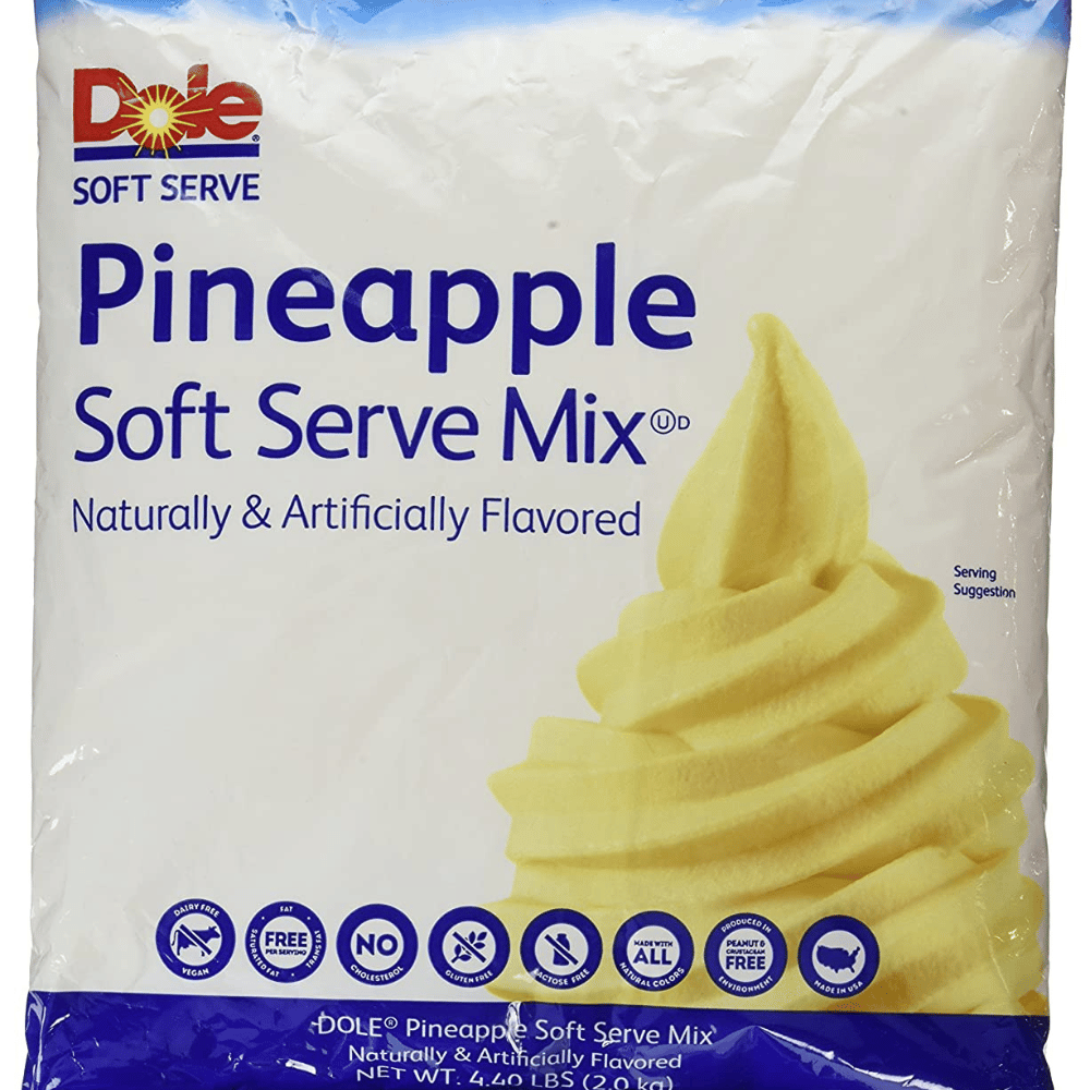 If you're looking for a delicious, lactose-free, dairy-free, gluten-free, cholesterol-free and vegan friendly alternative for soft serve ice cream, Dole Pineapple Flavored Soft Serve Mix is your answer. With a 4.4 pound size in the food service bag, it's definitely worth the purchase!