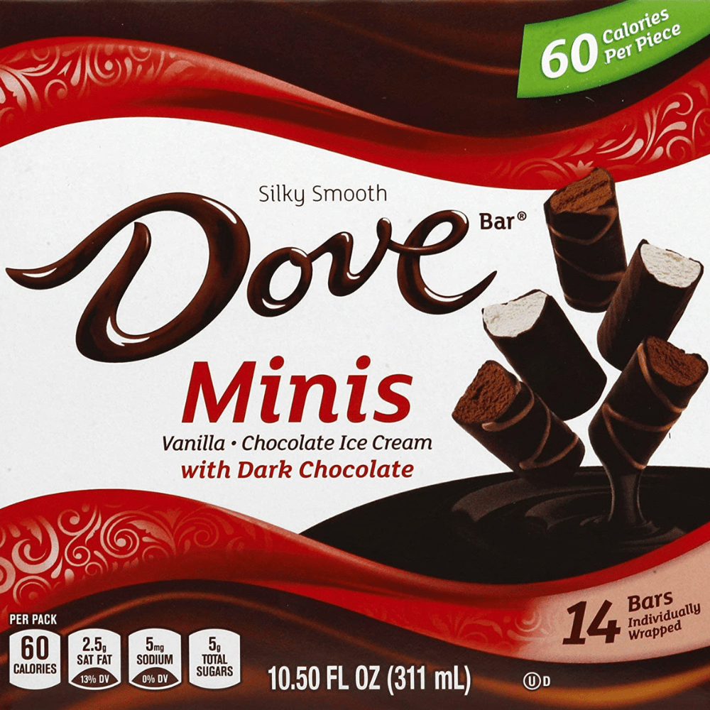 A sweet way to indulge in a decadent snack without feeling guilty is here! With the DOVE Minis Ice Cream Bars Variety Mix, you can have it all: rich and creamy vanilla or chocolate ice cream tucked in delicious DOVE Dark Chocolate.
