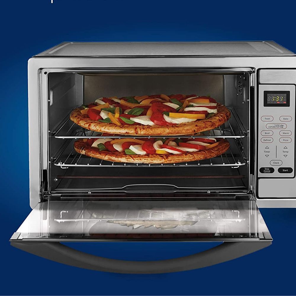 This all-in-one machine is packed with 10 versatile functions, including baking, broiling, pizza, cookies, defrosting, reheating, rotisserie, and convection.
