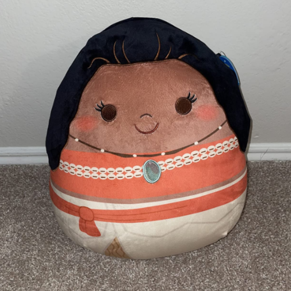 Fans of Disney Princesses will adore cozying up with this plush Moana Disney Squishmallow. Officially licensed by Disney, it is 14 inches of pure delight! With its high-quality and luxuriously soft materials, it's ideal for keeping you comfy on car rides, sleepovers, or a quick nap. Snuggle with this cuddly Moana plush, adorned in her traditional tapa top and pandanus skirt, as you drift away into comfortableness. If you’re looking for the perfect gift for your Disney fan, this Moana plush has all you need!