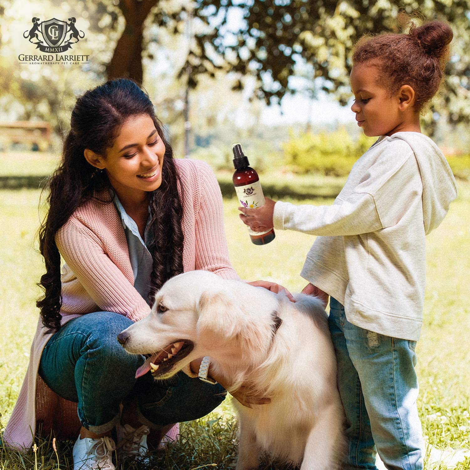 Gerrard Larriett Aromatherapy Pet Care is an essential oil calming spray for dogs that is recommended by veterinarians.