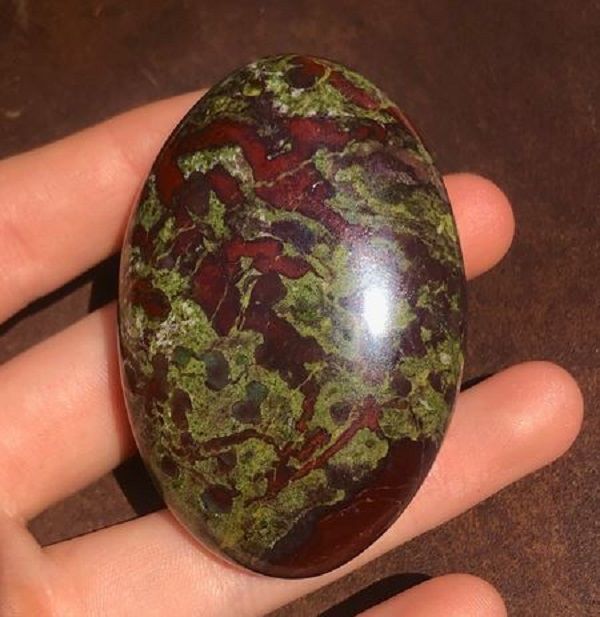 Dragon Bloodstone is a type of gemstone that is usually found in the form of a cabochon, and it is usually found in the months of April and May. It is a type of chalcedony that is characterized by deep red and green hues, and it is often used as an ornamental stone.